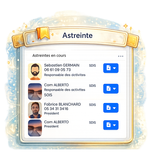 Sur une période temporaire, un droit d’accès peut être défini pour l’un des membres de votre personnel, c’est l’astreinte. Toutes les désignations sont enregistrées sur eBrigade et peuvent être consultées via un planning d’astreinte facilement accessible. Ce planning se remplit de manière quasi-autonome selon les règles définies. L’interconnectivité de l’outil permet de prévenir les conflits (personnel absent, droits d’accès déjà attribués pour la même période…). L’affichage des astreintes peut être filtré par organisation ou fonction pour une meilleure gestion. Lorsqu’une personne est désignée en astreinte, elle obtient des droits supplémentaires sur le logiciel afin d’exercer pleinement ses fonctions.