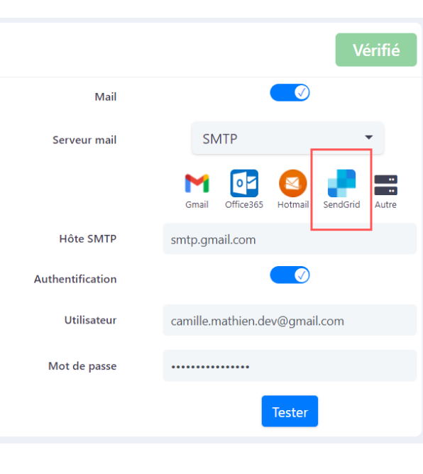 Connectez en 30 secondes votre compte SendGrid à eBrigade.