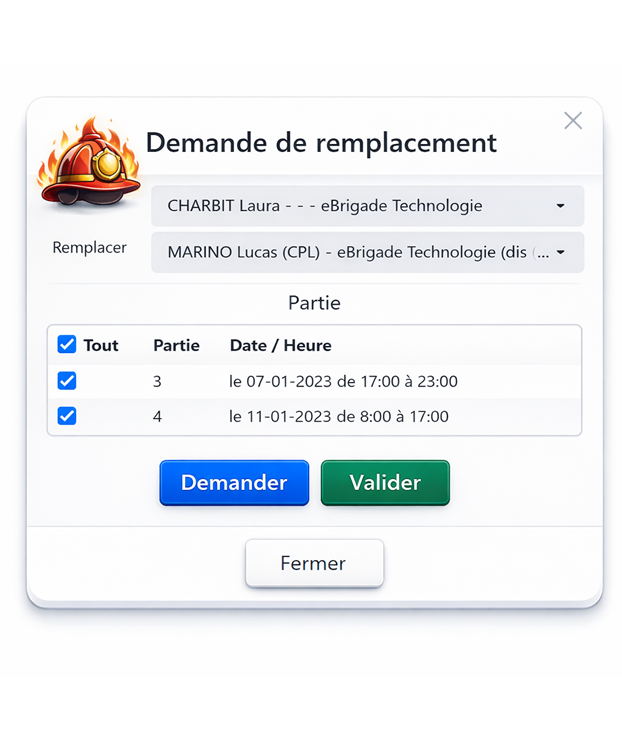 Absence de dernière minute, imprévu opérationnel ou arrêt de travail : les besoins de remplacement font partie du quotidien. Avec eBrigade, dites adieu au stress et aux plannings désorganisés. Automatisez la gestion des remplacements et assurez la continuité de vos activités en toute sérénité. Grâce à son module de remplacement simple, rapide et intuitif, toute demande se réalise en quelques secondes, sans perturber le fonctionnement de l’organisation. Les équipes gagnent du temps, les responsables gardent le contrôle. Toutes les activités sont créées en quelques clics sur eBrigade, permettant au personnel de s’y inscrire facilement. En cas d’indisponibilité, le remplacement est déclenché directement depuis l’activité concernée, pour une réactivité optimale et une organisation toujours opérationnelle. ✔️ Les bénéfices eBrigade :