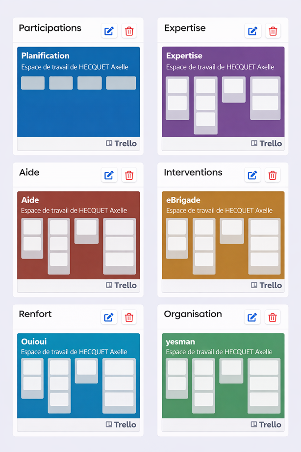 Trello : la gestion de projet visuelle intégrée à votre compte Trello est un outil de gestion de projet en ligne, collaboratif et visuel, qui permet d’organiser le travail sous forme de tableaux, de listes et de cartes. Il est largement utilisé par les équipes pour planifier des tâches, suivre l’avancement des projets et centraliser les informations importantes en temps réel. Désormais, Trello est directement intégré à votre compte. Vous pouvez afficher les tableaux Trello utilisés par vos équipes sous forme de widgets au sein de vos activités. Cette synchronisation facilite la lecture, le suivi et la collaboration, sans multiplier les outils. Grâce à des affichages simples, clairs et personnalisables, chaque membre d’une activité peut consulter les tableaux Trello associés, favorisant la transparence et la coordination des équipes. Les avantages de l’intégration Trello :